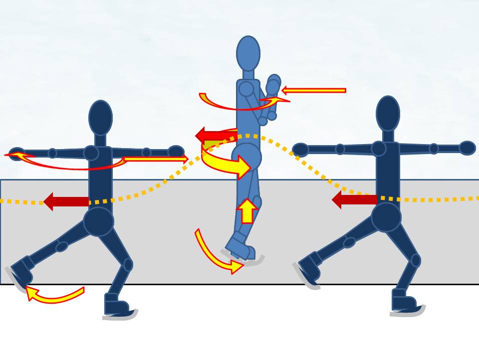 On the most complex level, the skater's body must be analysed as separate components moving in relation to the center of mass, which for most humans is approximately in the center of the abdomen or hips.